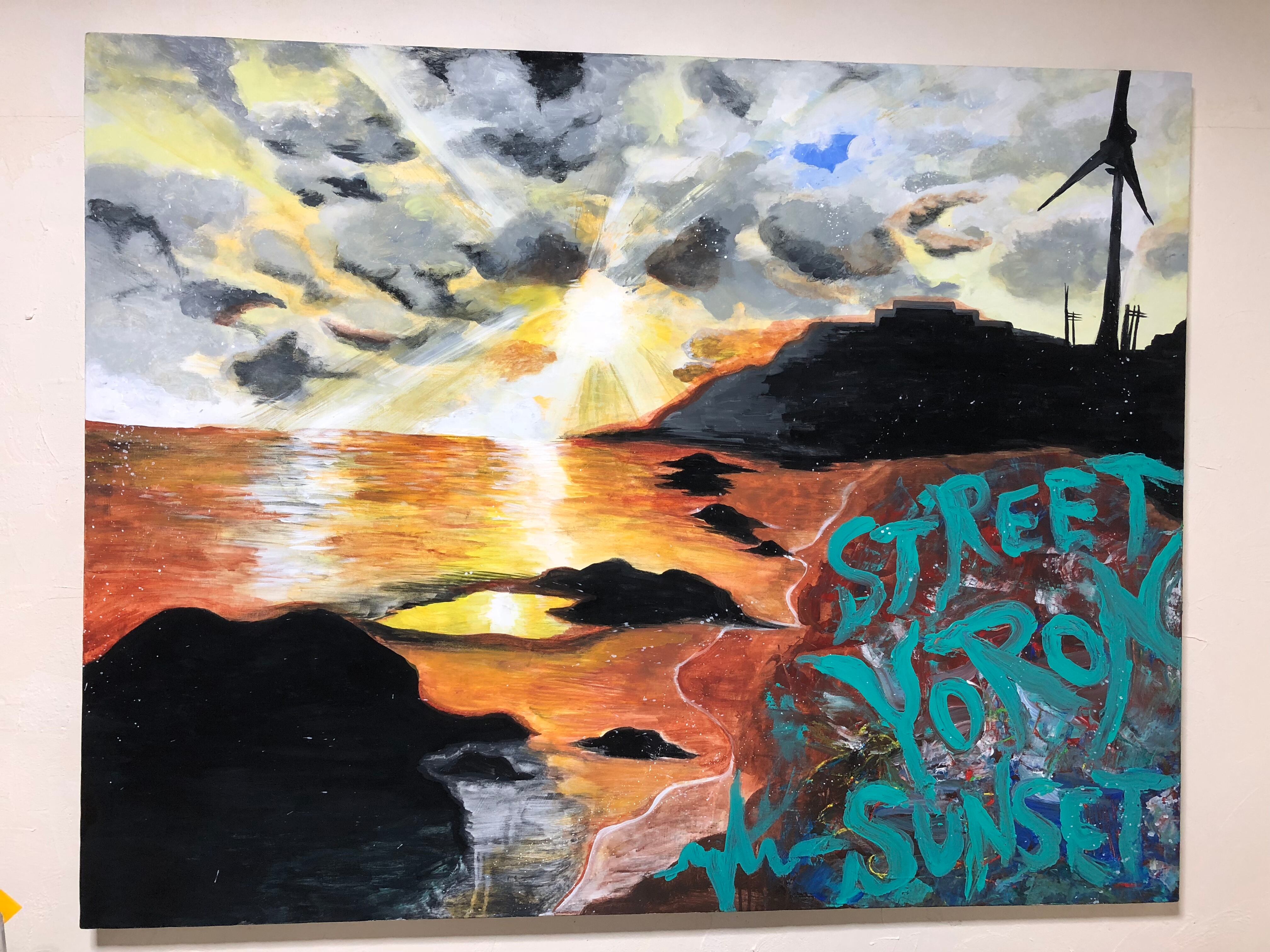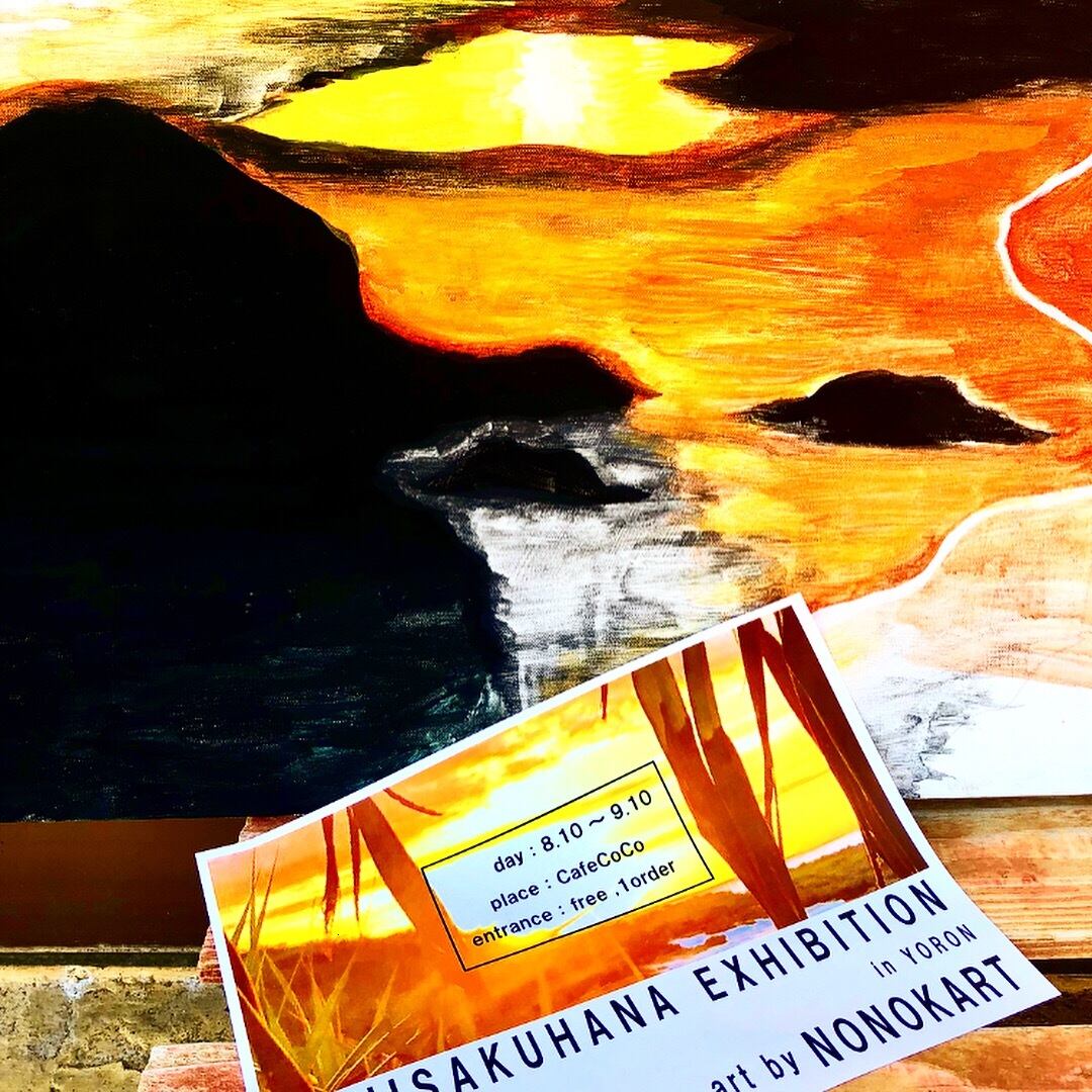 与論島シーマンズビーチにて展示しております。与論島の麦屋地区の近くにある、サンセットが美しい海岸を描いた作品。F50サイズ!与論島に行くことごありましたら、どうぞご観覧ください。