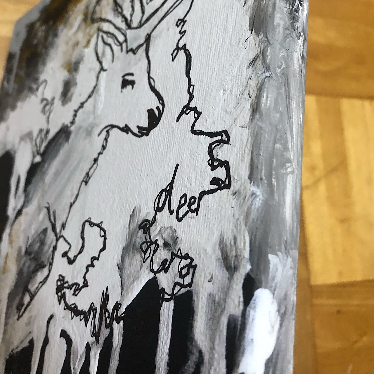アクリル絵の具、グリッター、サインペン
